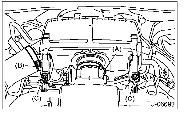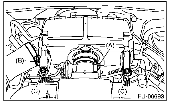 6. Loosen the bolt (C) which secures air intake chamber and collector cover bracket to the stay.