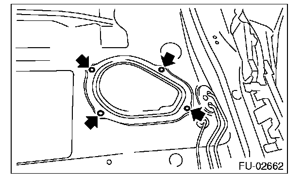 8. Remove the nuts securing the fuel sub level sensor upper plate to the fuel tank and remove the fuel sub level sensor upper plate.