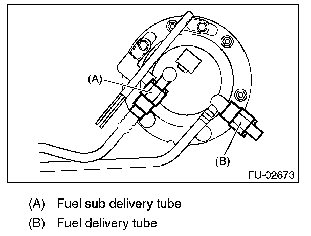 7. Disconnect the quick connectors of fuel delivery tube and fuel sub delivery tube.