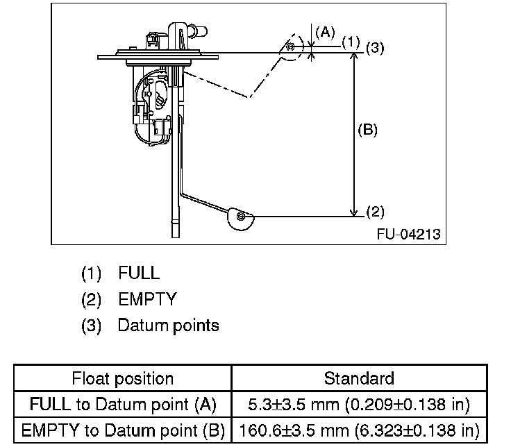 Measure the fuel sub level sensor float position.