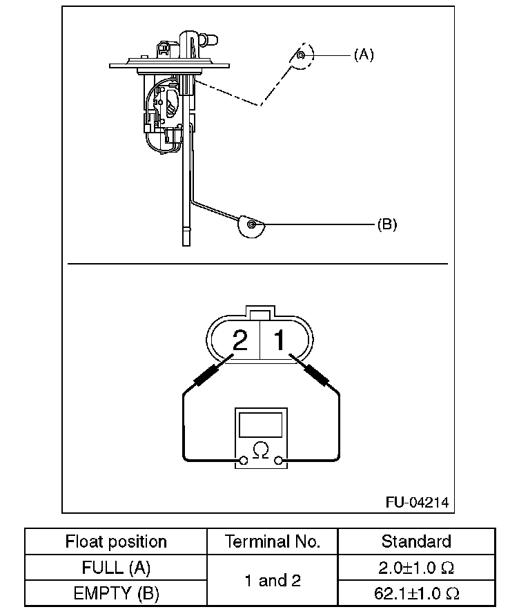 Measure the resistance between fuel sub level sensor terminals.