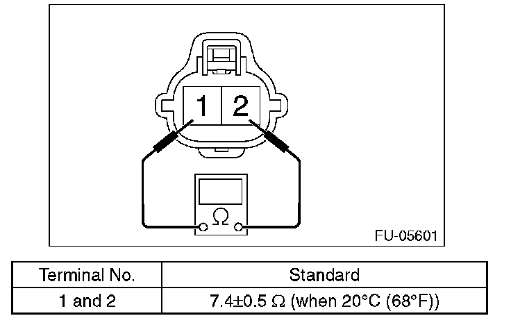 2. Measure the resistance between the oil flow control solenoid valve terminals.
