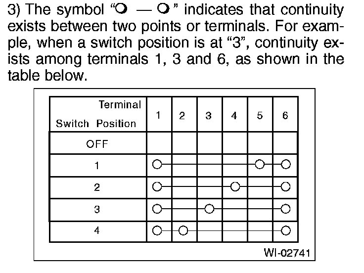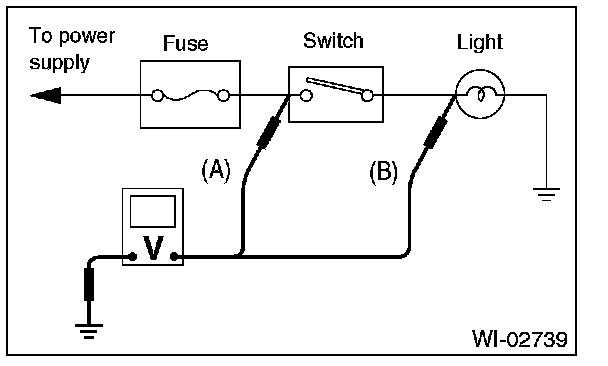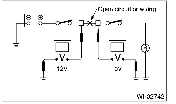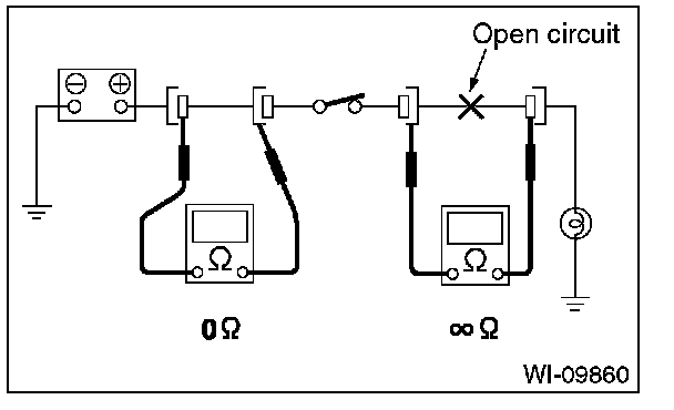 Disconnect all connectors affected, and check continuity in the wiring between adjacent connectors. When the ohmmeter indicates "infinite", the wiring is open.