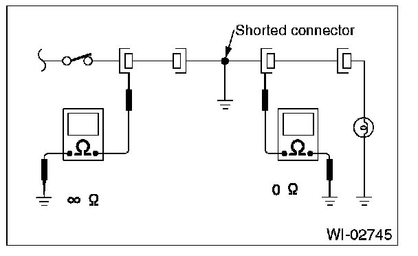 Disconnect all affected connectors, and check continuity between each connector and ground. When the ohmmeter indicates continuity between a particular connector and a ground, that connector is shorted.