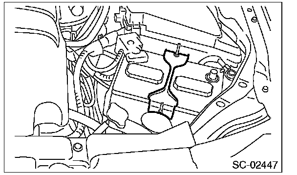 1. After disconnecting the battery ground terminal, remove the terminal cover, then disconnect the positive terminal.