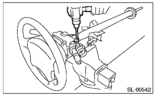 3. Secure the steering column in a vise. Remove the bolt with a drill.