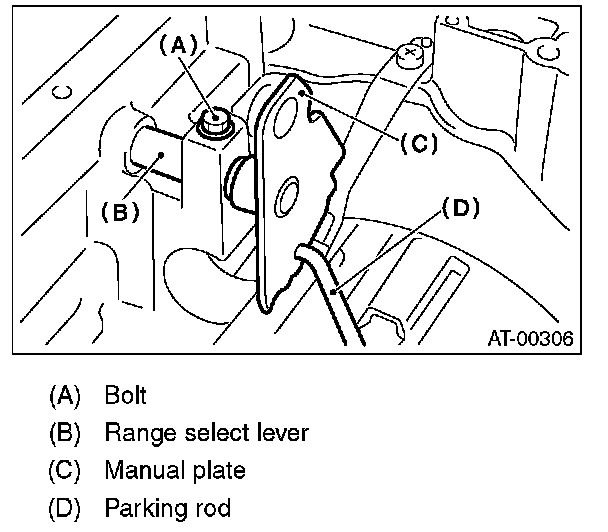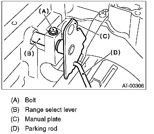 9) Remove the bolts securing range select lever, and then remove the select lever, manual plate and parking rod.