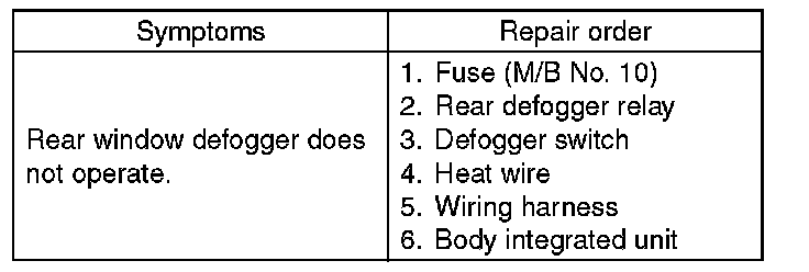CAUTION: Check that the rear window defogger timer is in initial setting or customize setting before performing inspection.