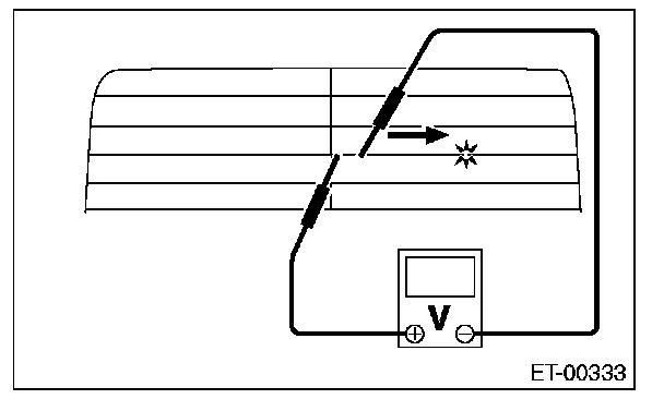 8. Move the tester probe on the negative (-) side slowly along the heat wire. If voltage changes from zero to several volts during movement of tester probe, heat wire is open at the voltage change point.