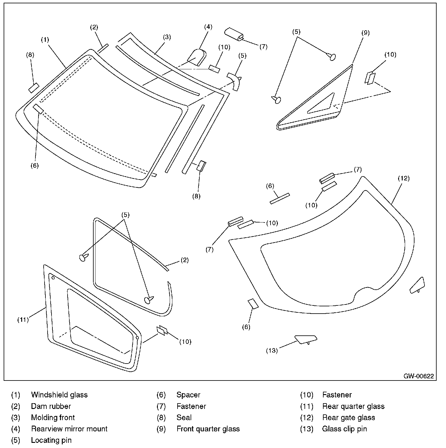 5. Attach the spacer to the lower end of the glass on passenger's side only.