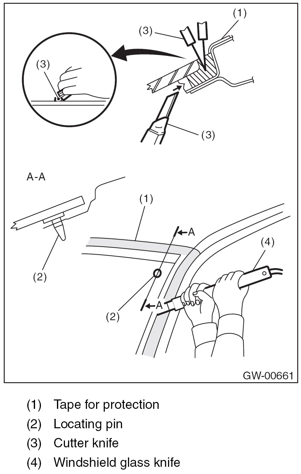4. Tape the body side of the circumference of windshield glass for protection.