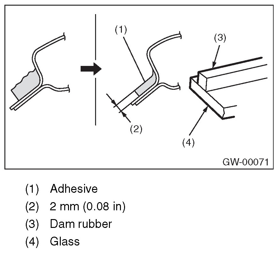 - For minimum drying time and vehicle standing time before driving after bonding, follow instructions or instruction manual from the adhesive manufacturer.