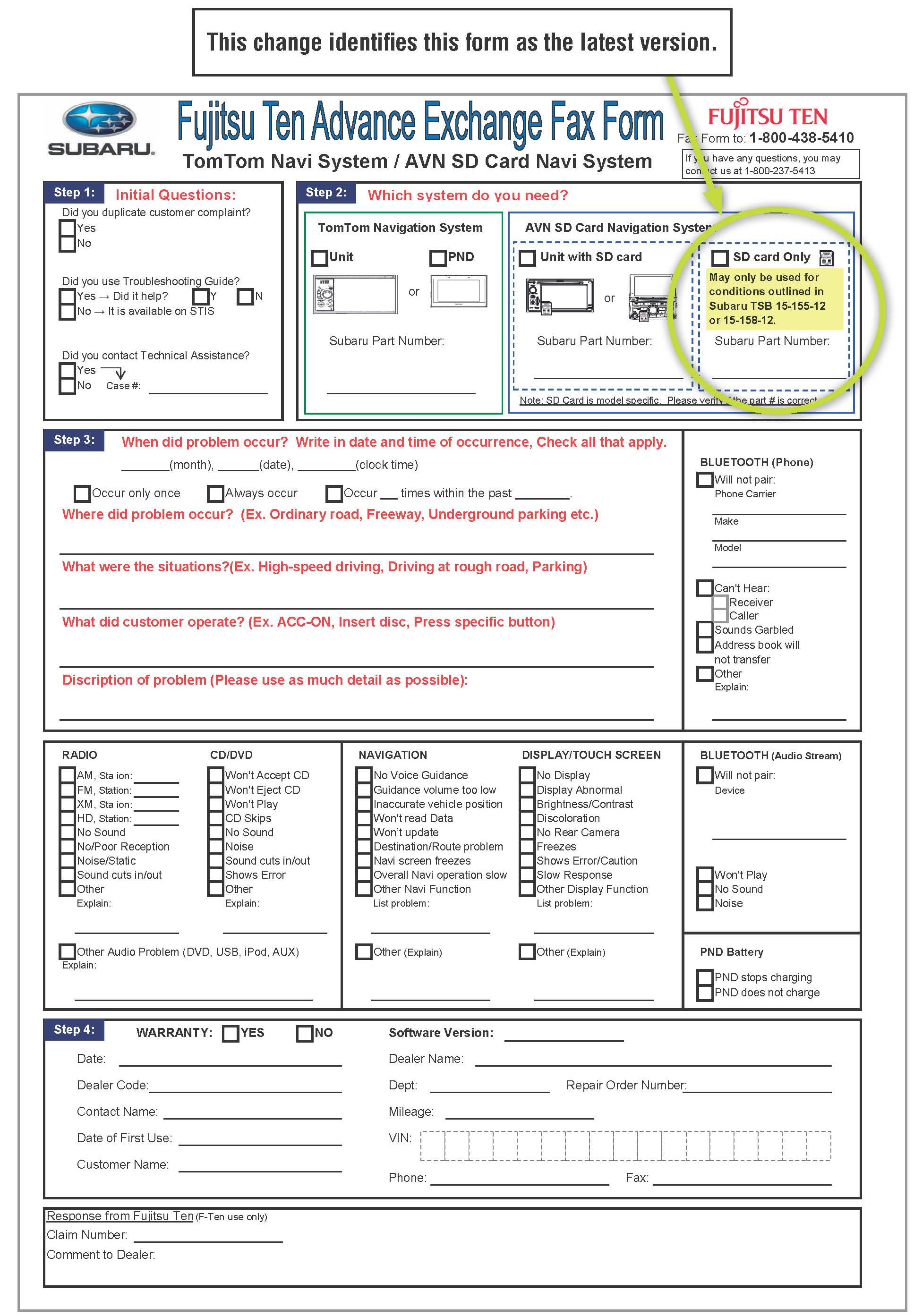 Subarunet > Service > Forms > TomTom/Fujitsu Ten Exchange Request Form.