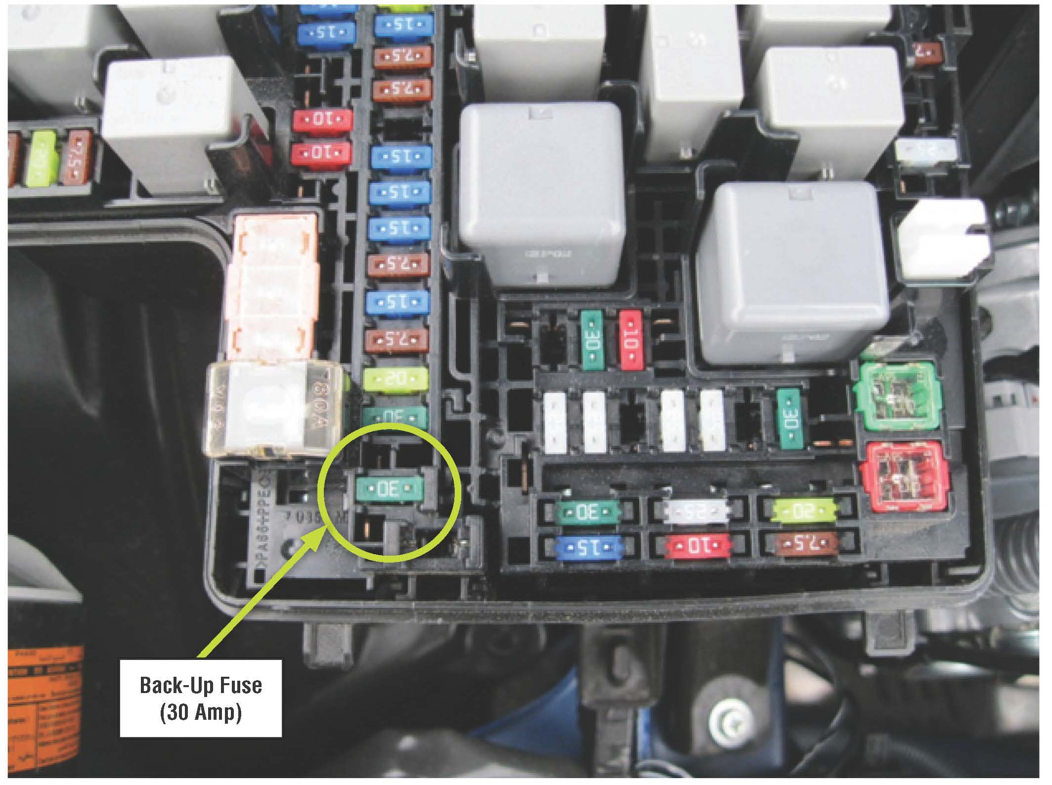 ^ Step 2: Remove the Back-Up fuse from the under-hood Main Fuse Box (M/B) and leave it out for at least a minute.