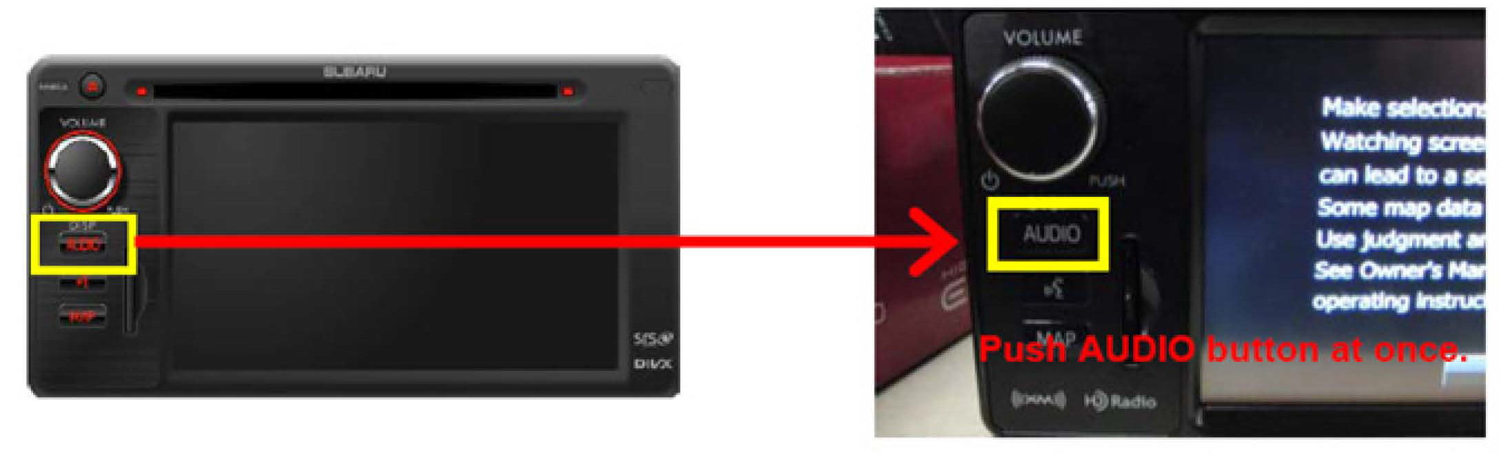 ^ Check and ensure that the battery has sufficient charge to proceed. NOTE: Battery failure during programming will result in internal audio head unit damage that cannot be repaired.