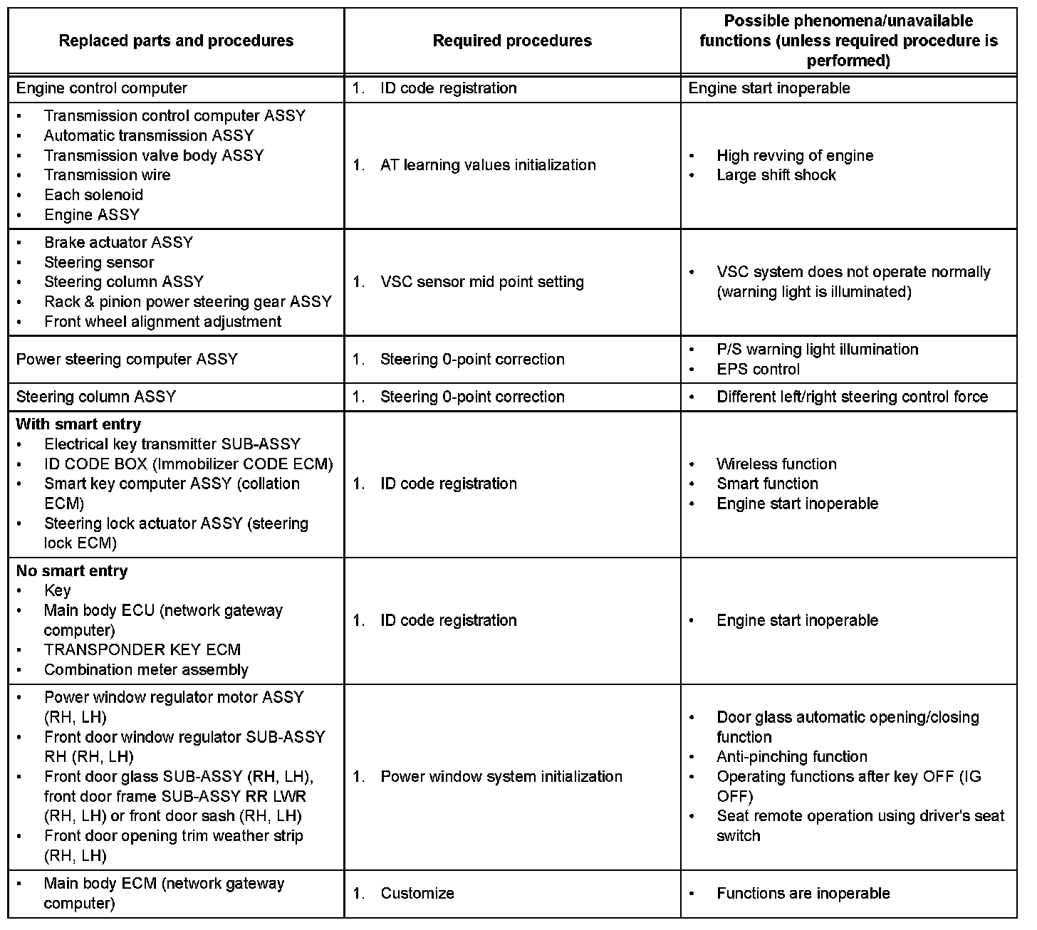 PROCEDURES NECESSARY WHEN ECU OR OTHER PARTS ARE REPLACED