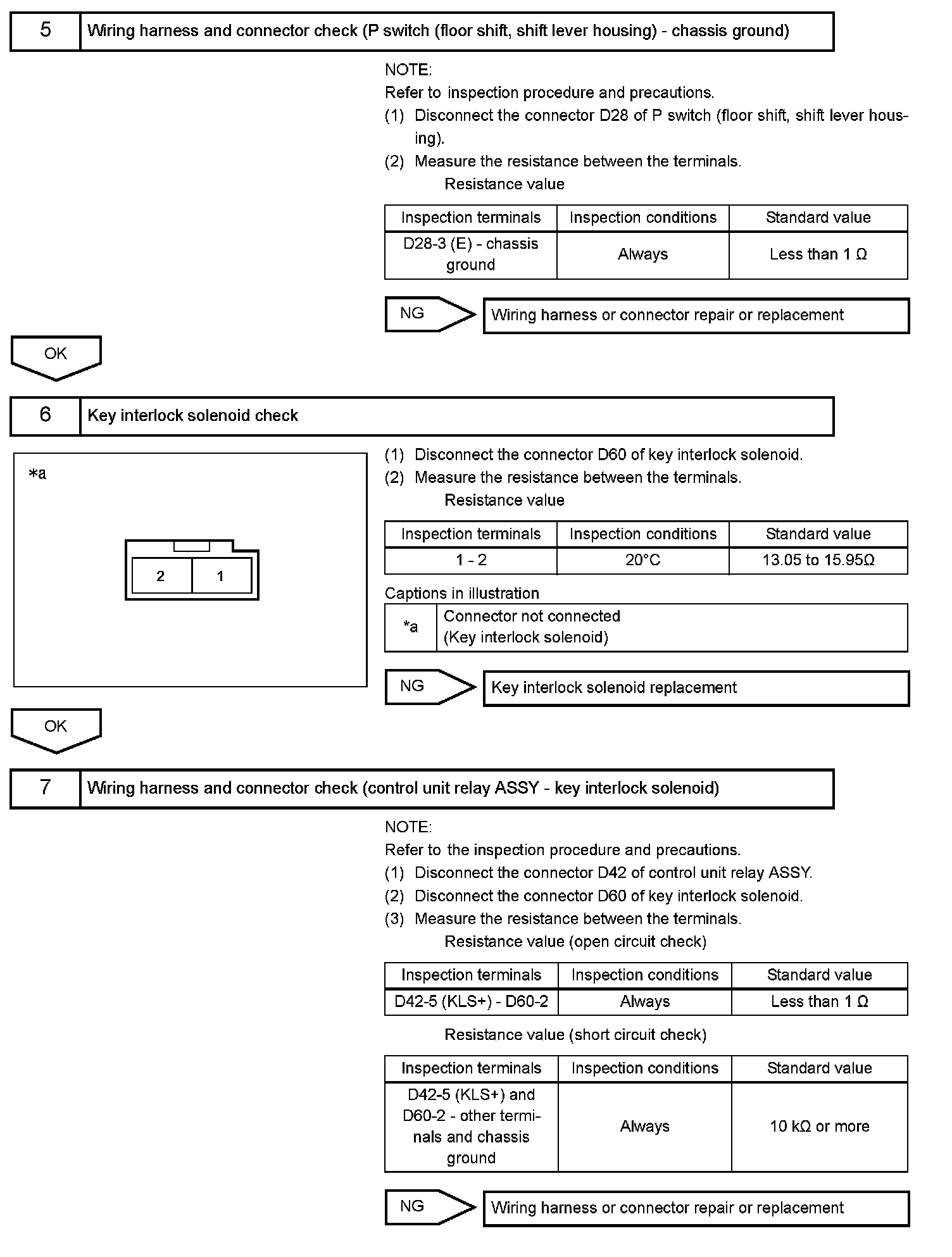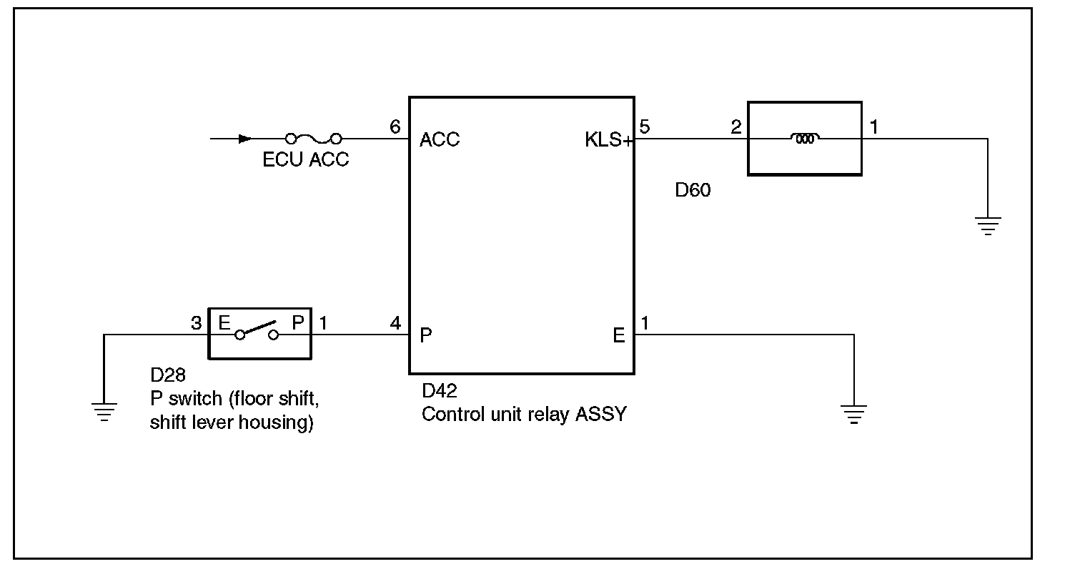 The control unit relay ASSY outputs a signal to the key interlock solenoid when the ACC signal and P signal are input.