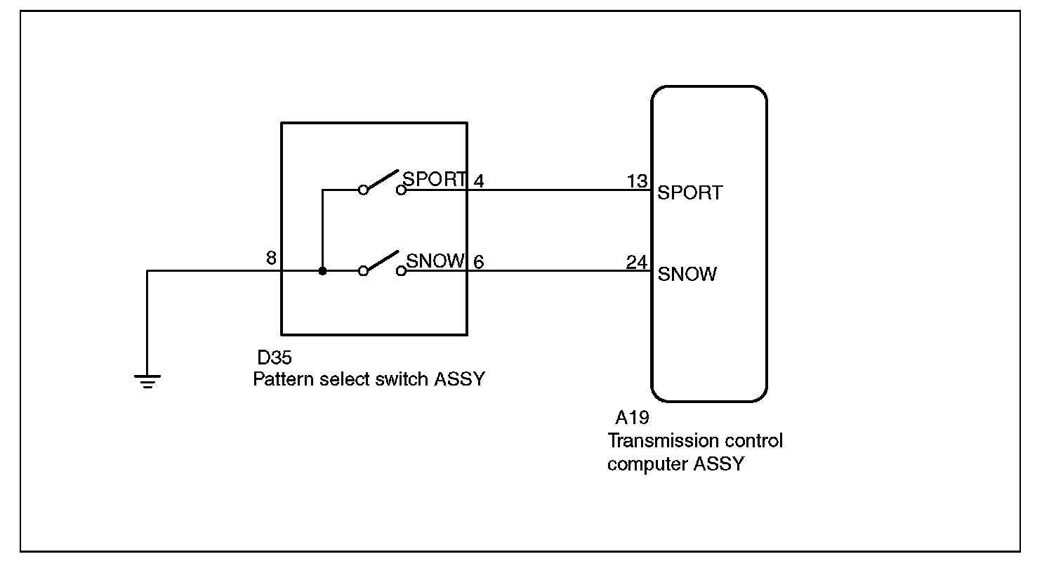 Drive mode can be switched by inputting signal of the pattern select switch ASSY to the transmission control computer.