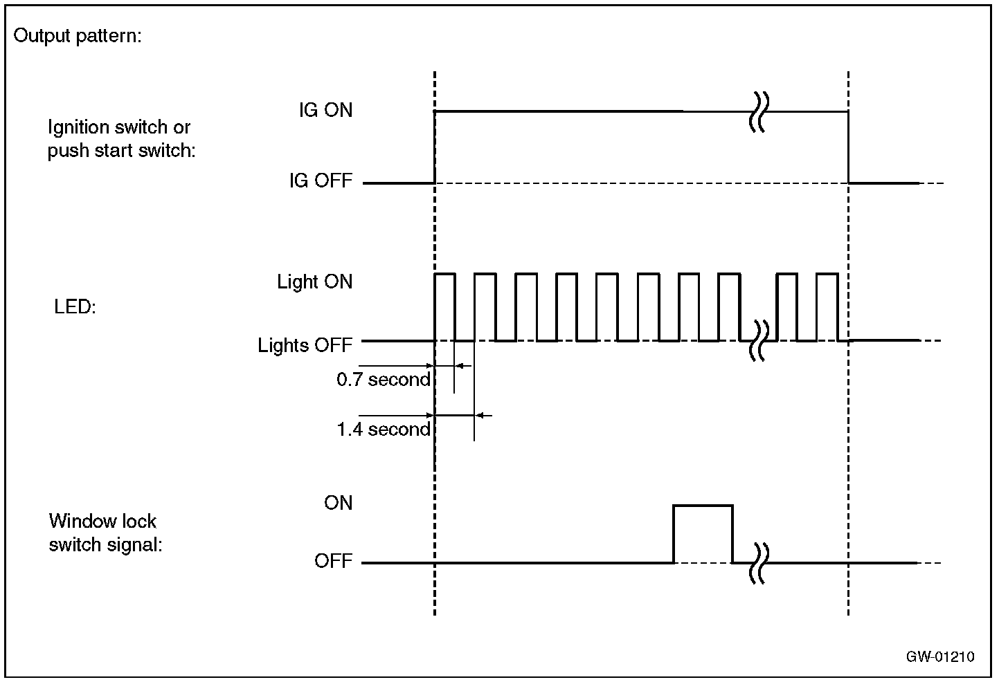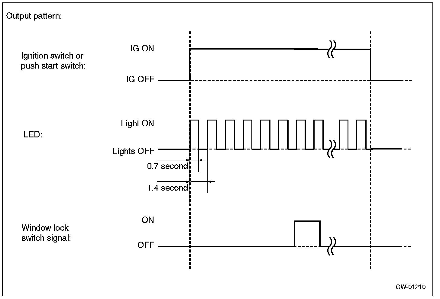NOTE: When LIN communication is failed, the indicator blinks in a pattern of 1.4 seconds ON/1.4 seconds OFF. When LIN failure and other failure occurs simultaneously, the pattern of 0.7 seconds ON/0.7 seconds OFF is performed.