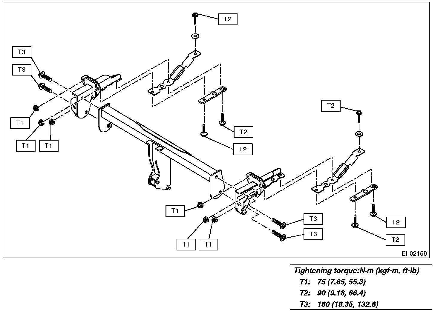 5. Remove the nuts, and then remove the trailer hitch main frame assembly.