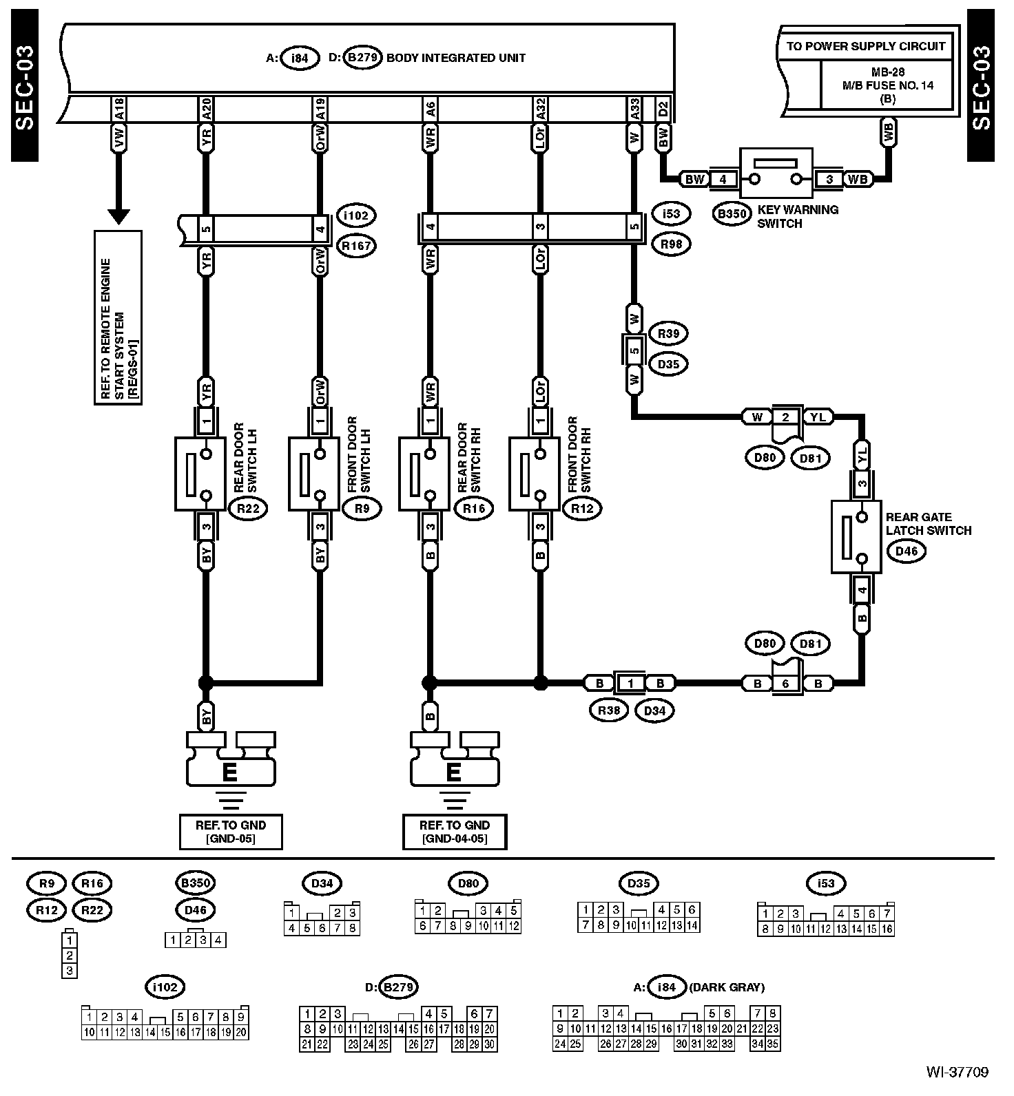 The locations of the Connectors or Grounds shown within these diagrams can be found via the connector or ground number at Vehicle Locations.