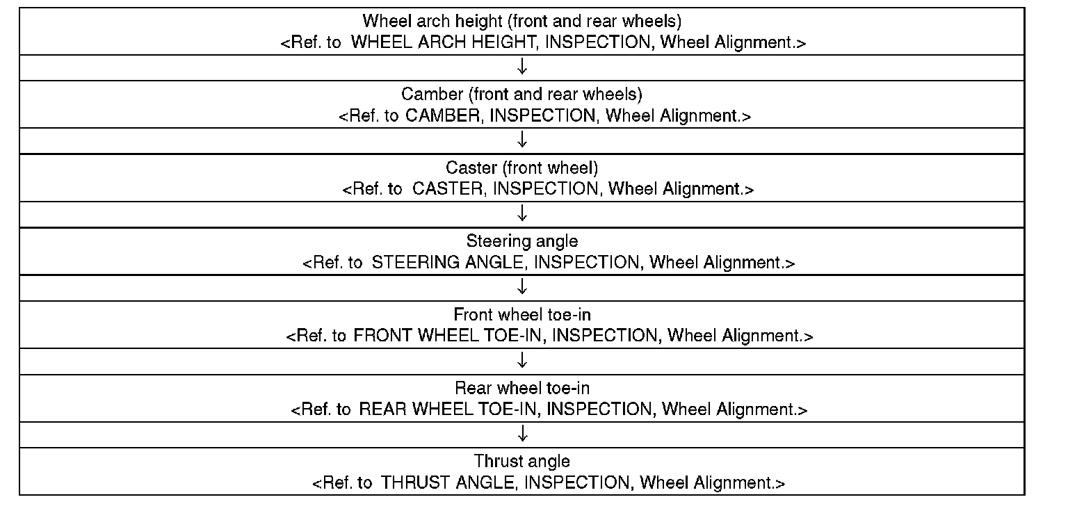Check, adjust and measure the wheel alignment in accordance with the procedures indicated in the figure.