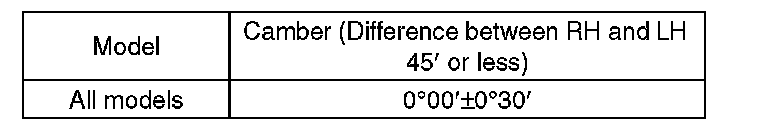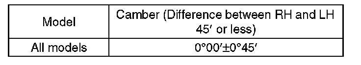 1) When adjusting the camber, adjust it to the following value.