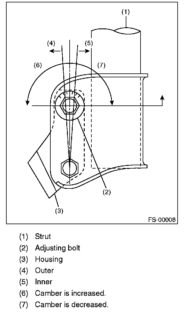 3) Turn the camber adjusting bolt so that the camber is set at specification.