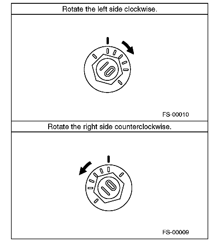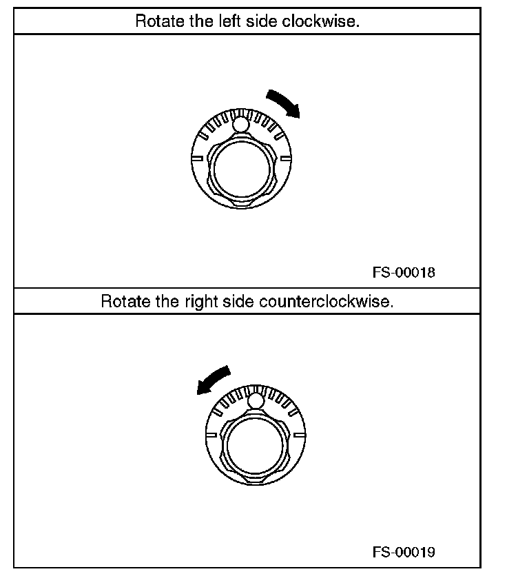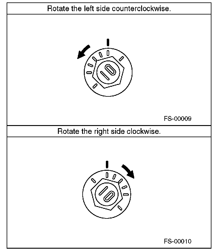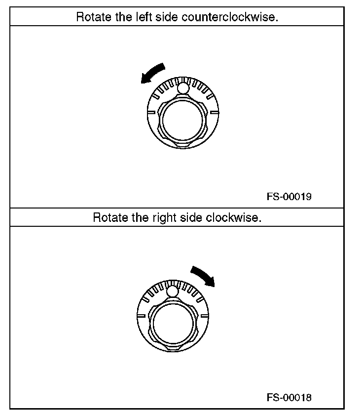 2) When one rear wheel is adjusted in a toe-in direction, adjust the other rear wheel equally in toe-out direction, in order to make the thrust angle adjustment.