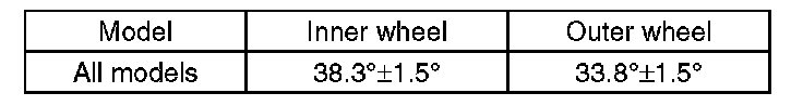 1) Check that the left and right wheel steering angles are within specification.