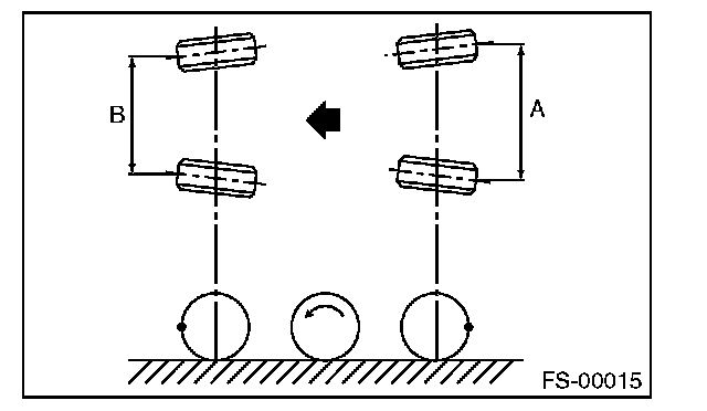 2) Place a mark at the center of both left and right tires, and measure distance "A" between the marks.