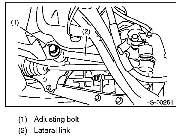 2) Turn the adjusting bolt until toe-in is within the specification.