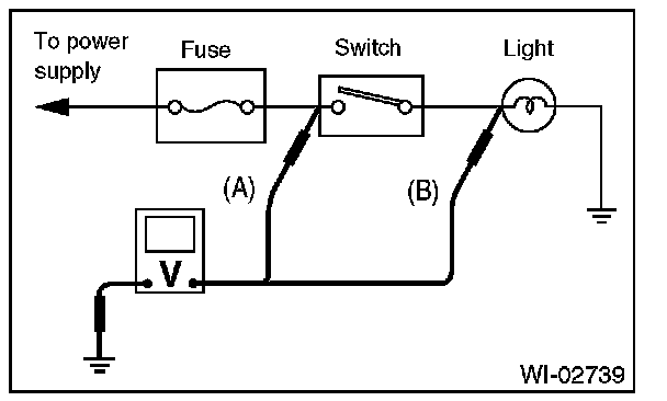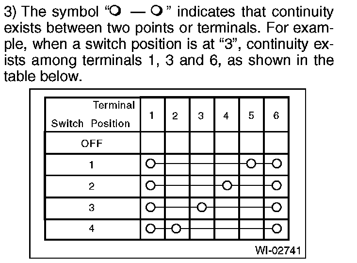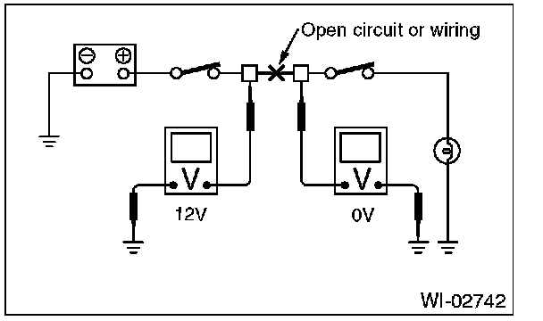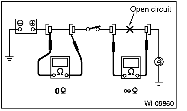 Disconnect all connectors affected, and check continuity in the wiring between adjacent connectors. When the ohmmeter indicates "infinite", the wiring is open.