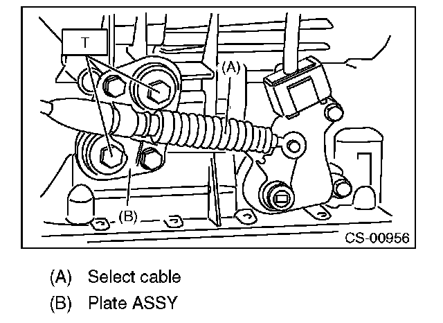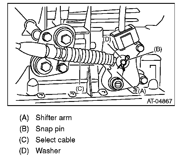 6) Install the select cable to the shifter arm.