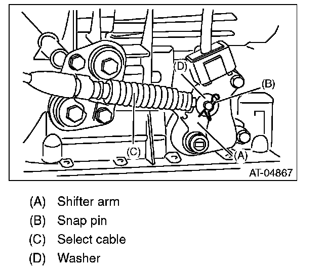 7) Remove the snap pin and washer from the shifter arm.