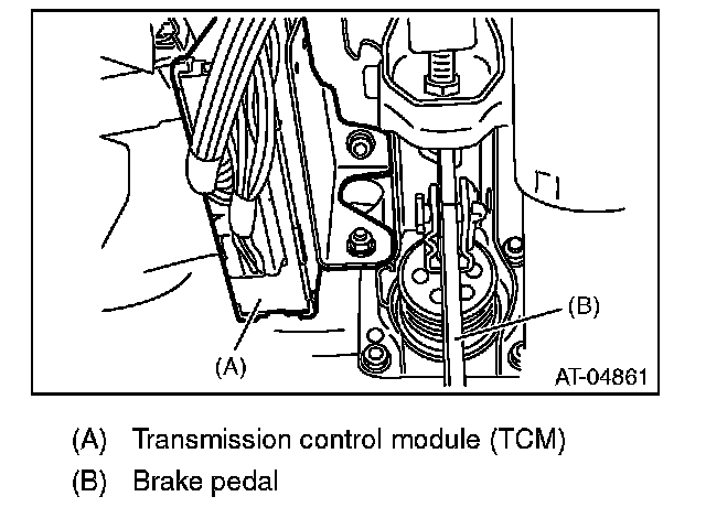 To avoid the damage to bracket and TCM, do not remove after installing TCM to bracket. If installed by mistake, the part must be replaced with a new part.