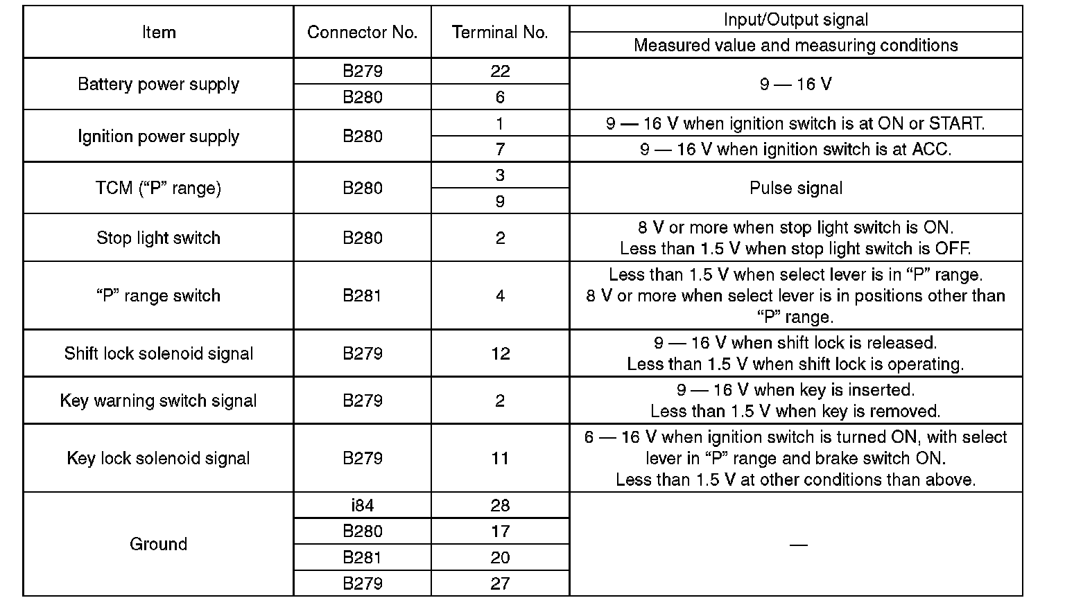 Pinout Values and Diagnostic Parameters