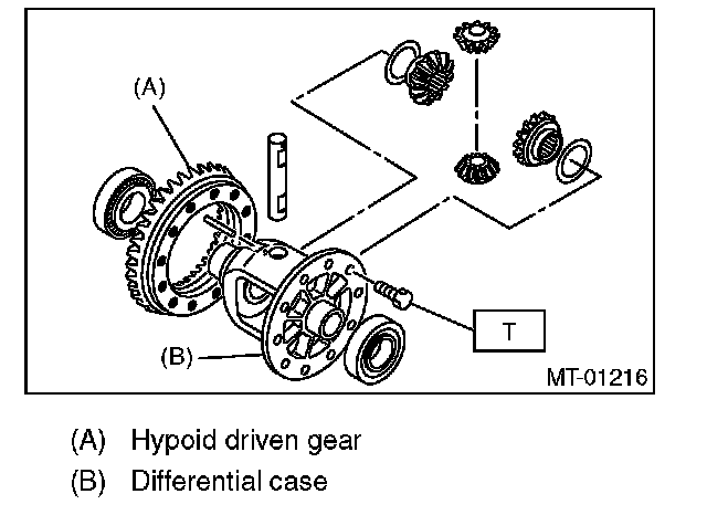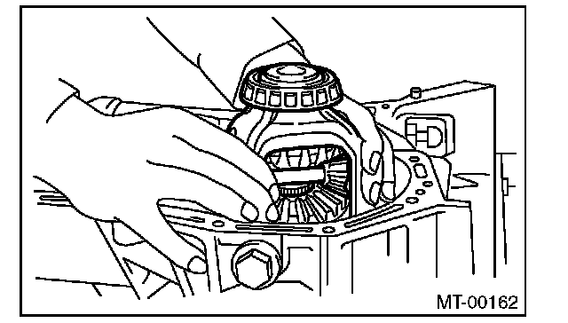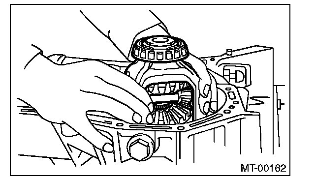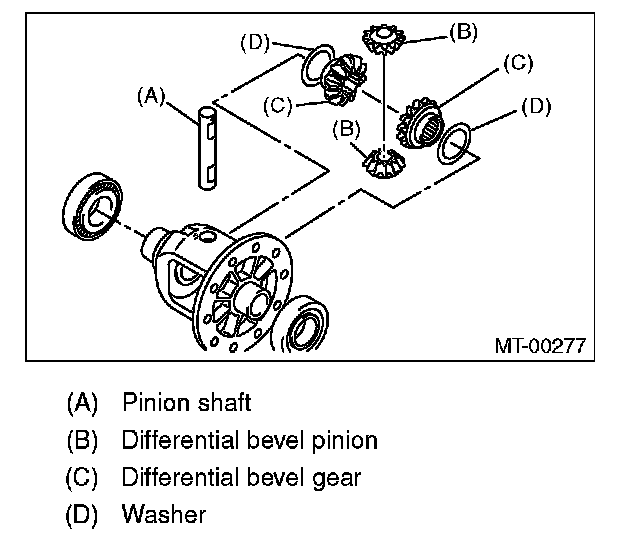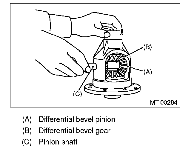 1) Install the differential bevel gear and differential bevel pinion together with washer, and insert the pinion shaft.