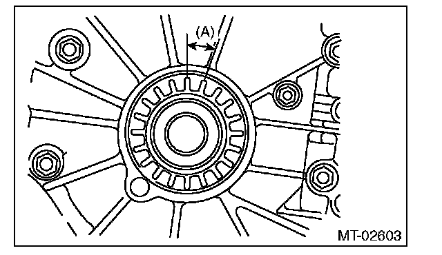 2) Install SUBARU genuine axle shafts to both sides, rotate in the inversion direction so that the gauge contacts the tooth surface, and read the dial gauge