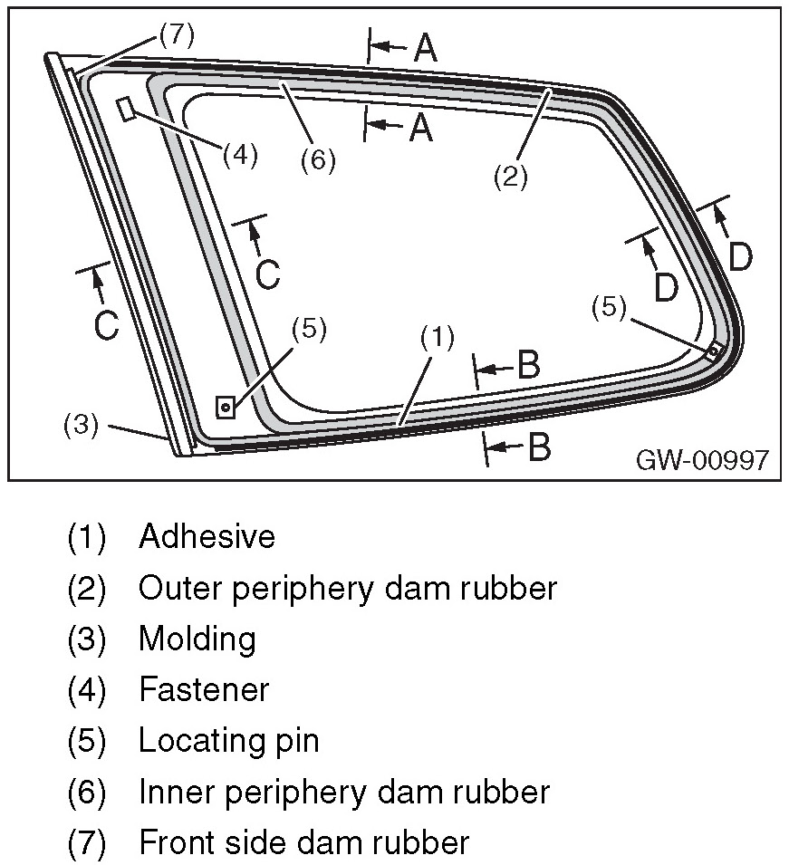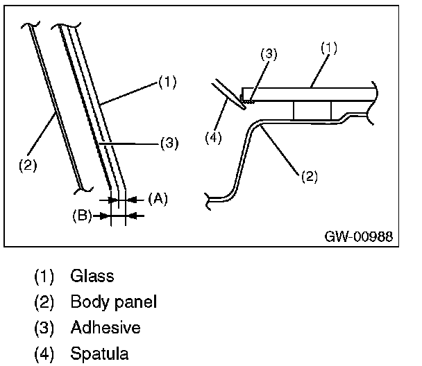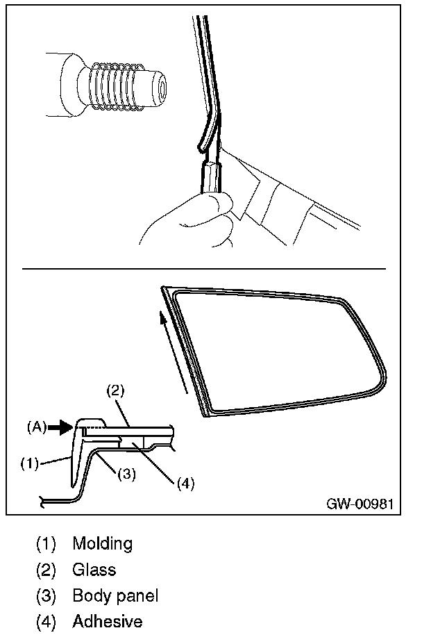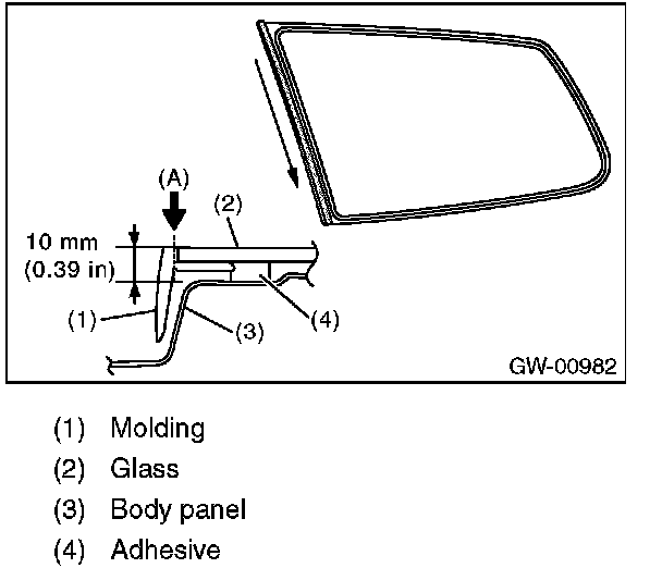 8. Apply adhesive in the same procedure as for windshield glass.