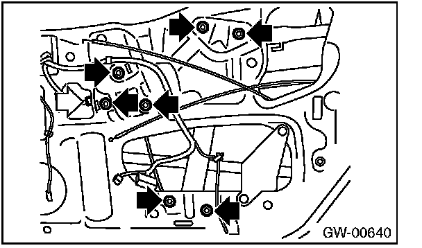 3. Remove the bolts, and then remove the front regulator and motor assembly.