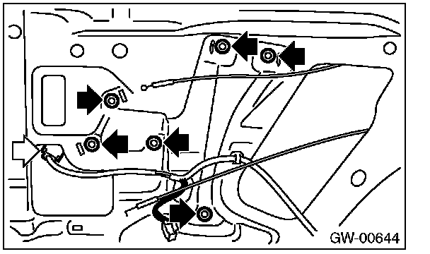 3. Remove the bolts, and then remove the rear regulator and regulator assembly.