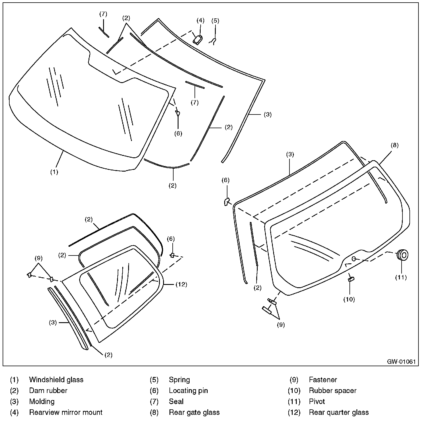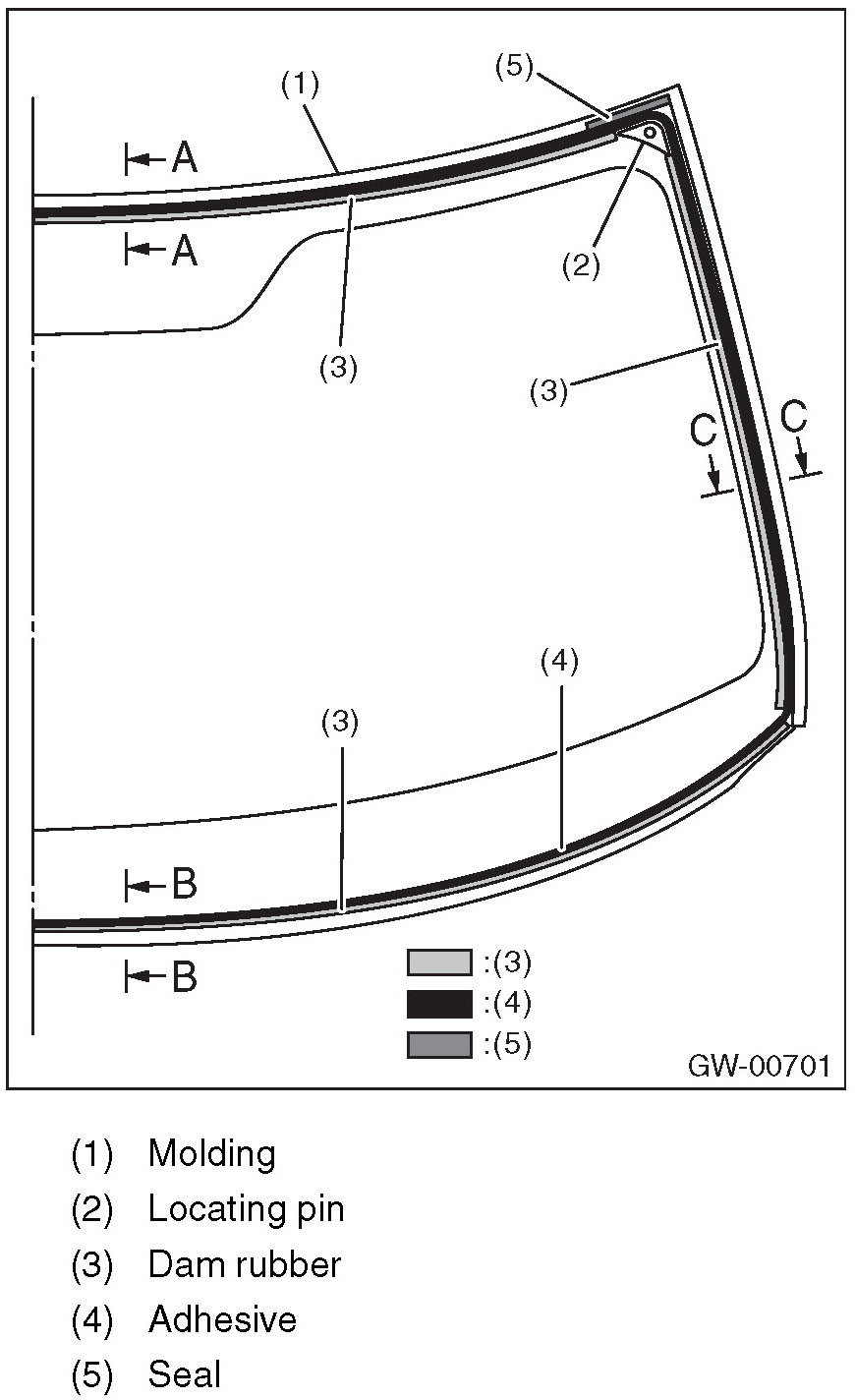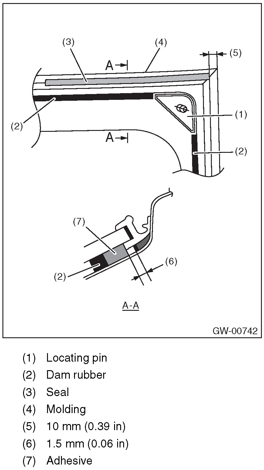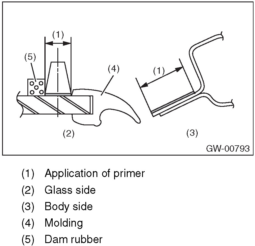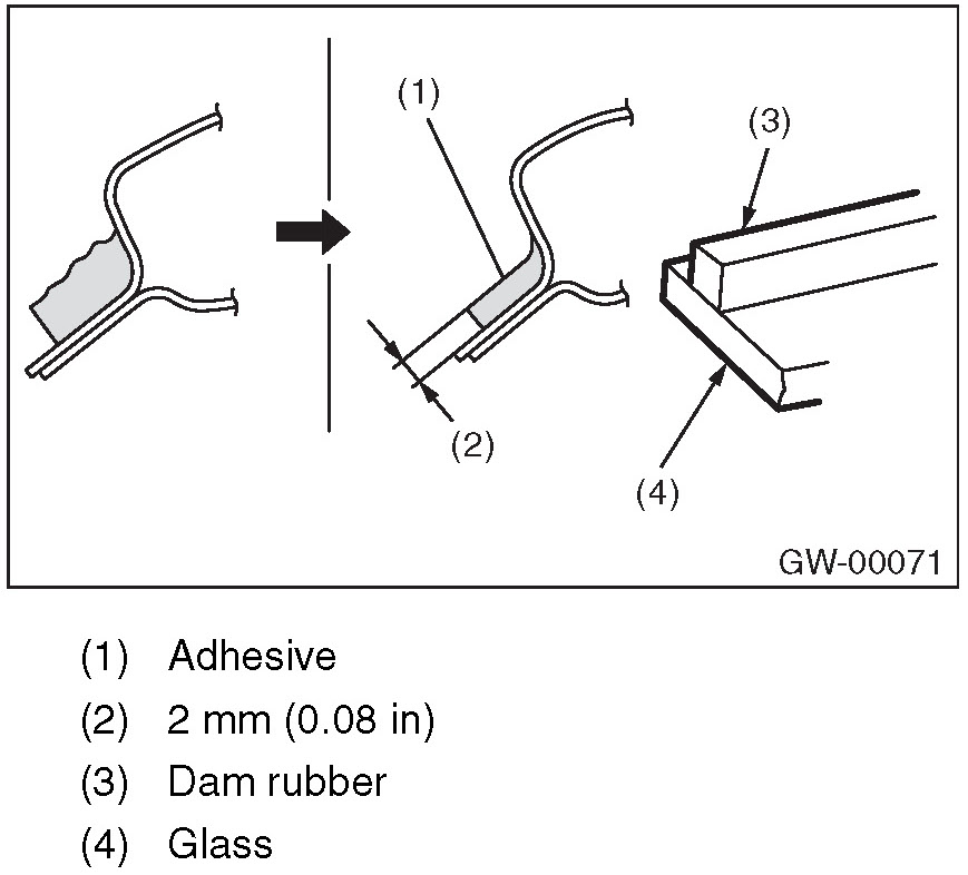 - For minimum drying time and vehicle standing time before driving after bonding, follow instructions or instruction manual from the adhesive manufacturer.