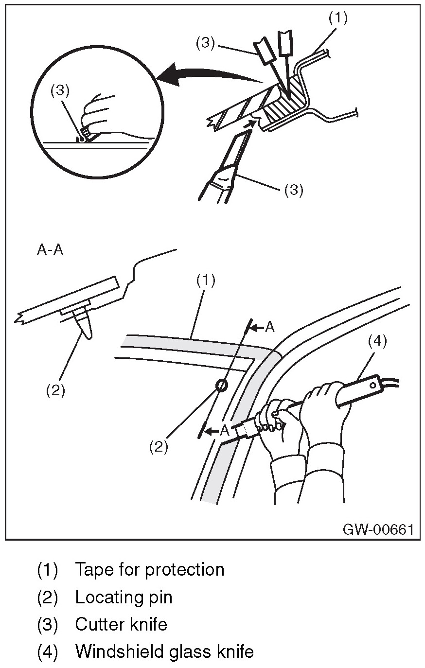 - Cutting of adhesive part shall be started with wider gap between windshield glass and body.