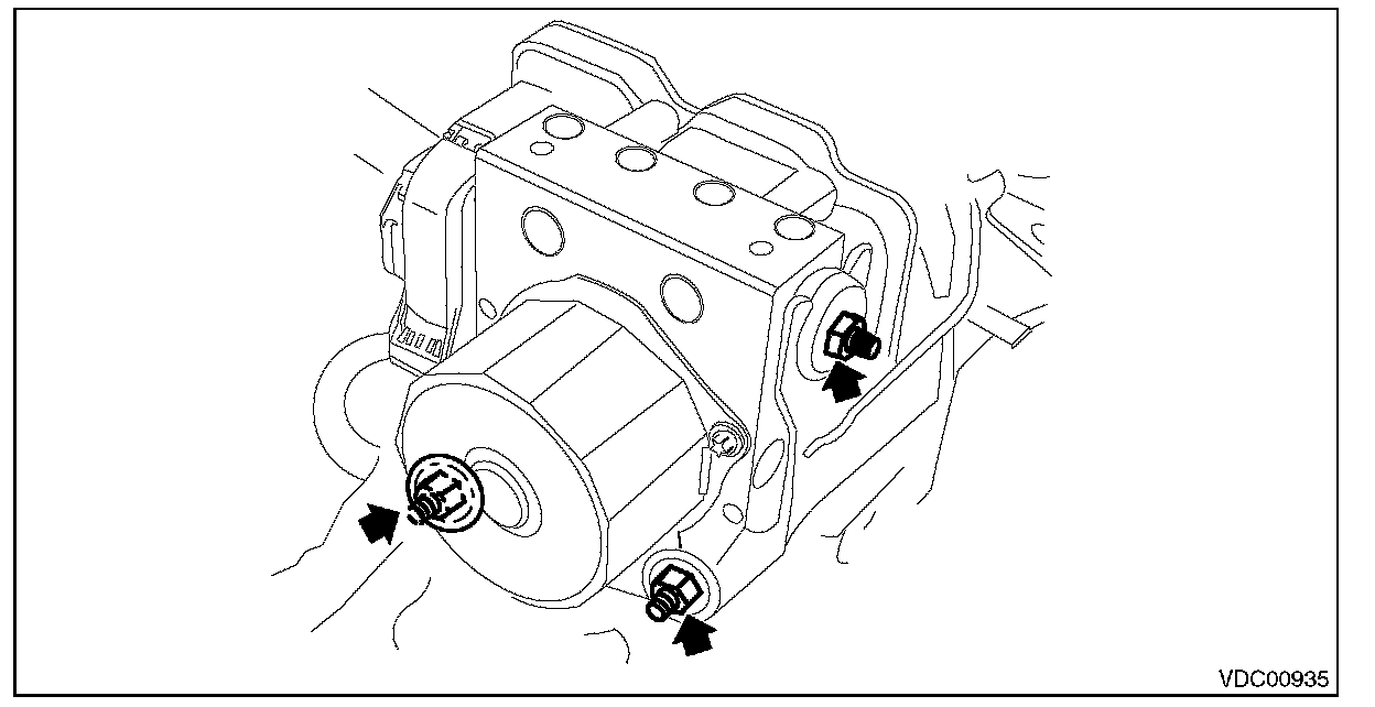 (4) Remove the nuts and remove the VDCCM&H/U from the bracket - hydraulic unit.