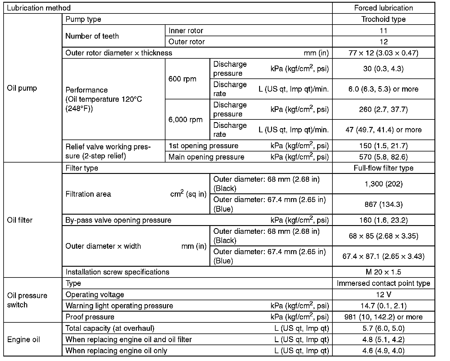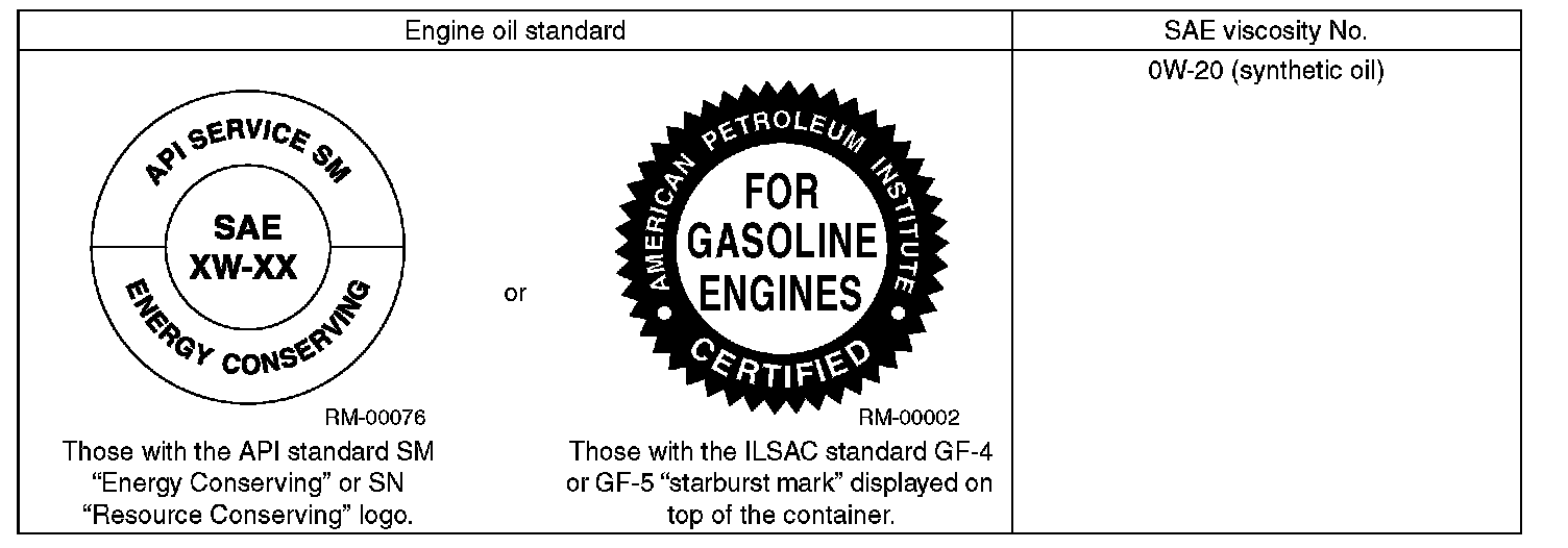 ^ Use 0W-20 (synthetic oil).