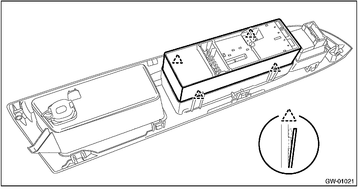 3. Release the claws, and then remove the panel - power window main switch.