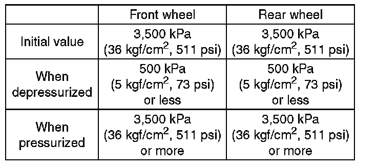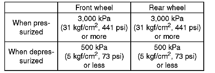 7) Read values indicated on the pressure gauge and check if the fluctuation of the values between decompression and compression meets specification. Depress the brake pedal and check that it is not abnormally hard, and tightness is normal.