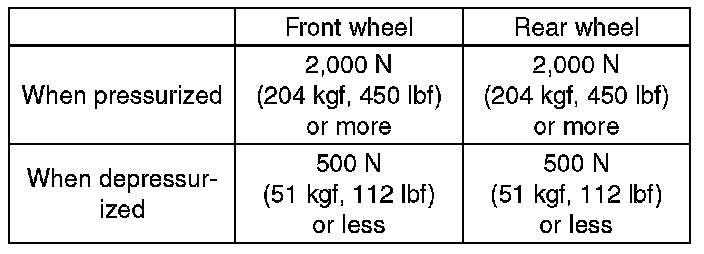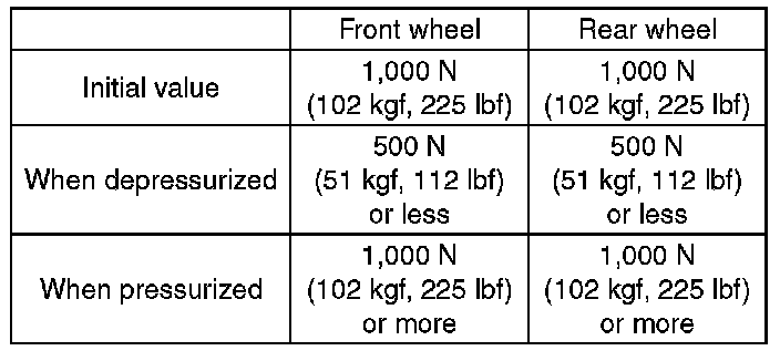 7) Read values indicated on the brake tester and check if the fluctuation of the values between decompression and compression meets specification.