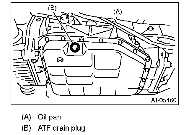 ^ Directly after the vehicle has been running or the engine has been idling for a long time, the ATF is hot. Be careful not to burn yourself.